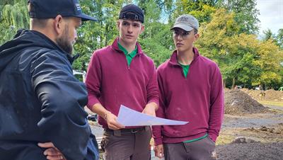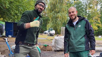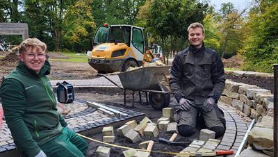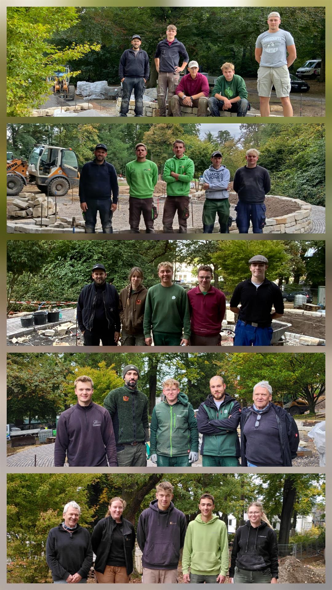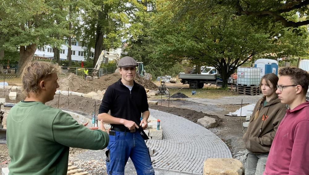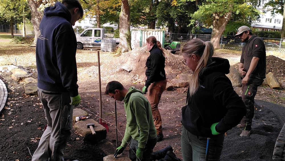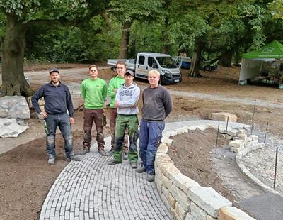 Umgesetzt wurde der Schaugarten von 20 Auszubildenden des Garten- und Landschaftsbaus aus ganz Niedersachsen. Sie wurden für die Bauphase von ihren Ausbildungsbetrieben freigestellt, um einen Einblick in die Fülle an Tätigkeiten im Landschaftsbau zu erhalten.