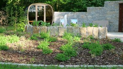 Hier im Themengarten wurde Thüster Kalkstein verwendet. Der Zaun ist aus heimischer Kastanie und nicht aus Aluminium oder Kunststoff. Denn bei heimischen Hölzern aus nachhaltiger Forstwirtschaft ist weder die Herstellung noch die Entsorgung ein Problem. Und natürlich ist auch die Bepflanzung von hier. Staudengärtner und Baumschulen aus der Umgebung kultivieren mit viel Hingabe Pflanzen, die an das regionale Klima gewöhnt sind. Für fast jeden Wunsch im Garten gibt es eine nachhaltige Lösung.
